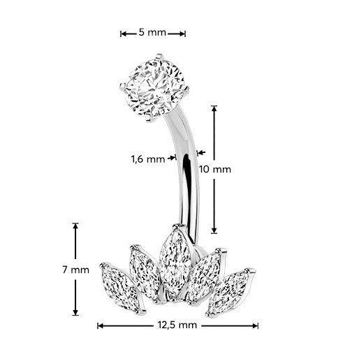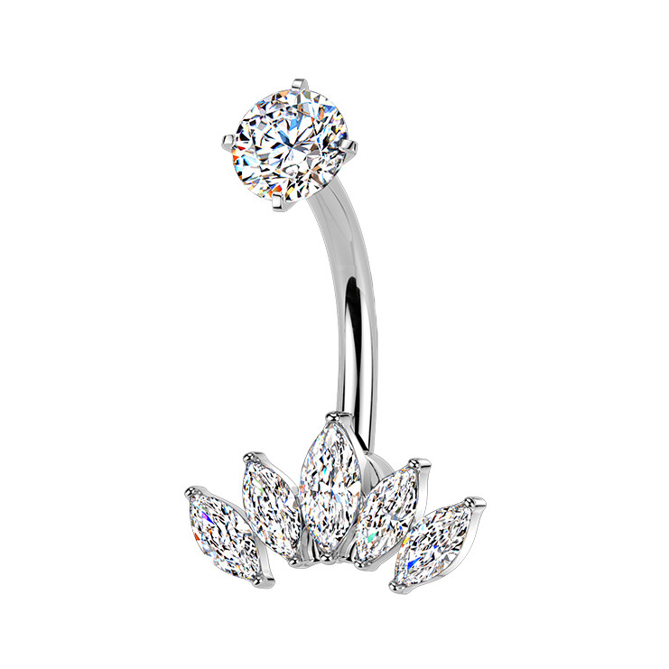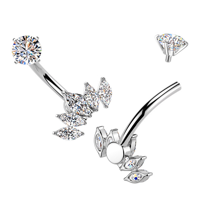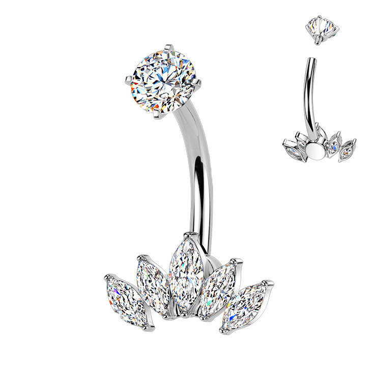 Ocelový piercing do pupíku se zirkony
