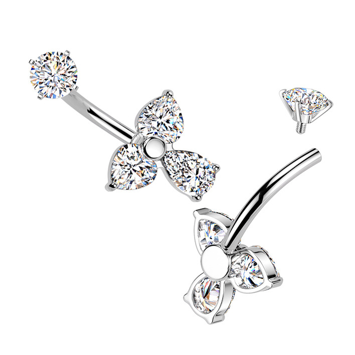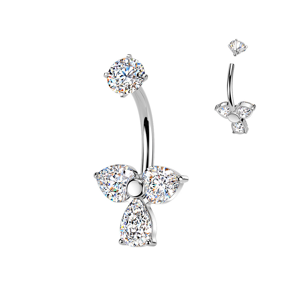 Piercing do pupíku dekorovaný kubickými zirkony čiré barvy