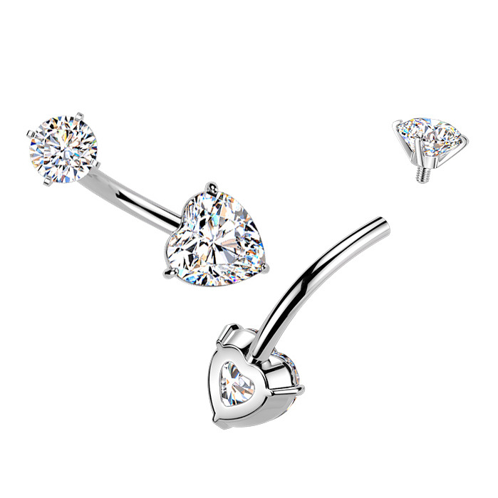 Ocelový piercing do pupíku srdce