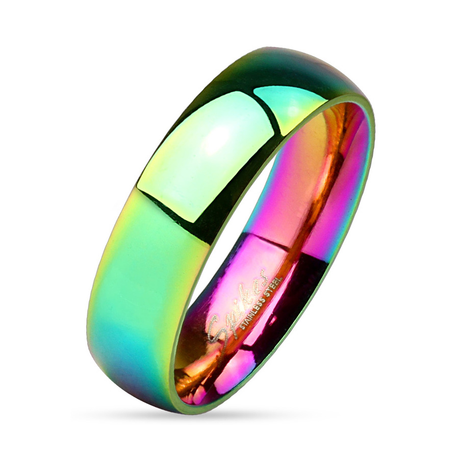 Ocelový prsten duhový, šíře 6 mm, vel. 49