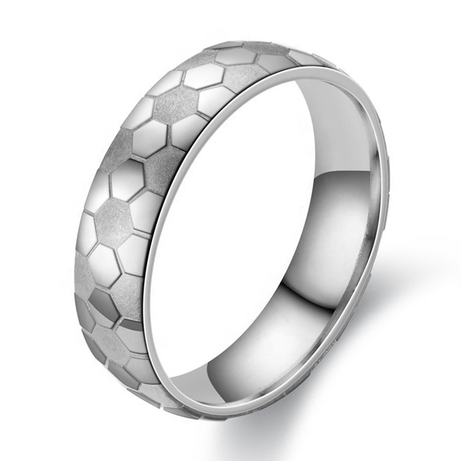 Pánský ocelový prsten zdobený dekorem fotbalového míče