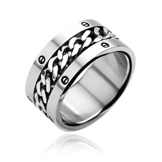 Ocelový prsten zdobený řetízkem