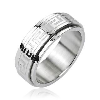 Ocelový prsten rotační - antistresový zdobený řeckými motivy