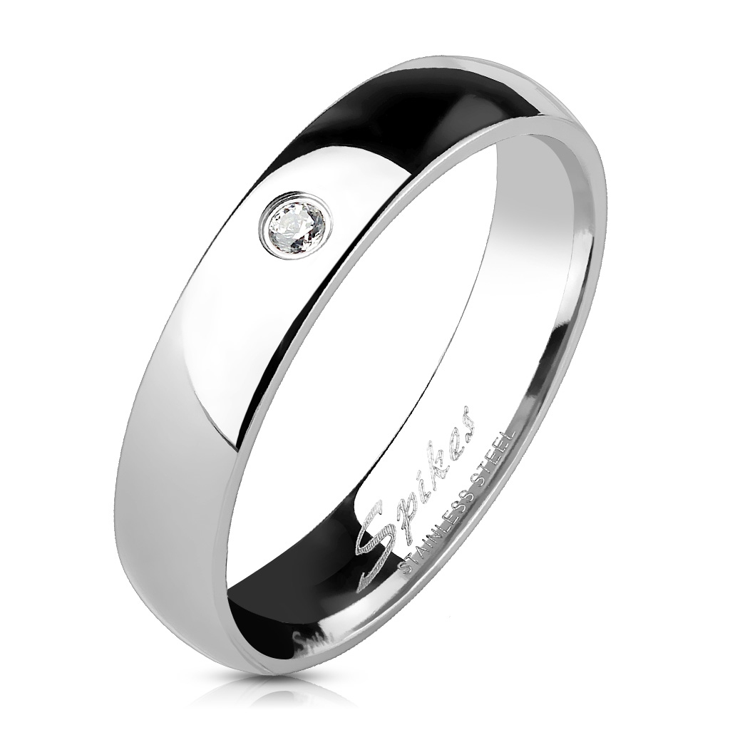 Ocelový prsten zdobený kulatým zirkonem čiré barvy