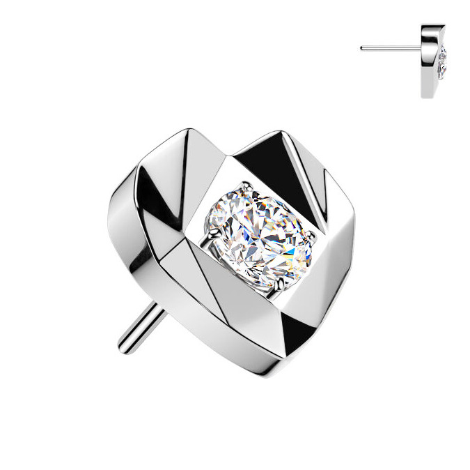 PUSH IN piercing - překrásně a velmi detailně zpracovaná náhradní ozdobná část ve tvaru srdíčka zdobeného zirkonem