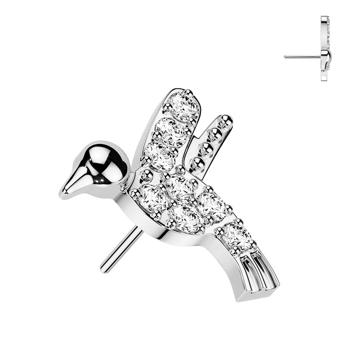 PUSH IN piercing - překrásně a velmi detailně zpracovaná náhradní ozdobná část v podobě ptáčka kolibříka dekorovaného čirými zirkony