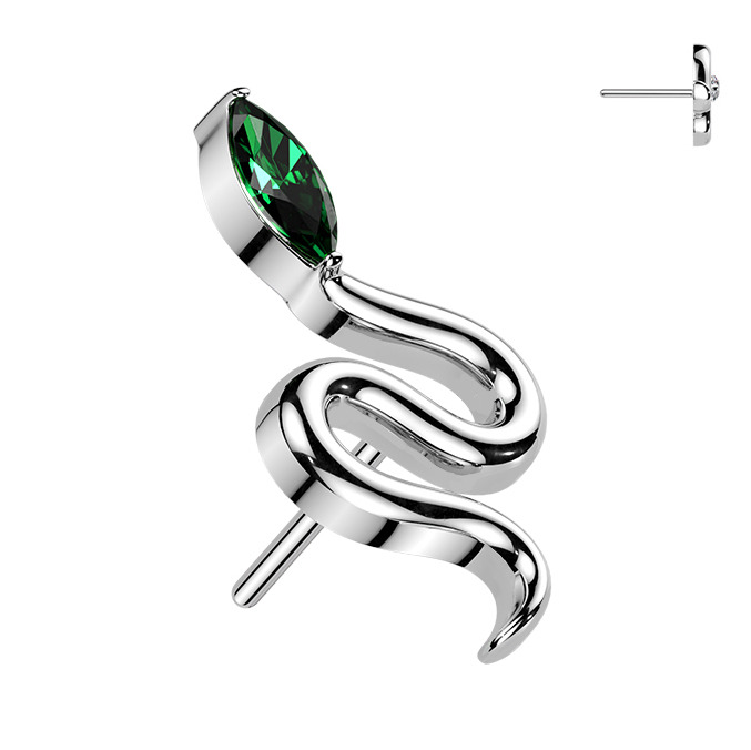 PUSH IN piercing - překrásně a velmi detailně zpracovaná náhradní ozdobná část ve tvaru hada dekorovaného zeleným zirkonem