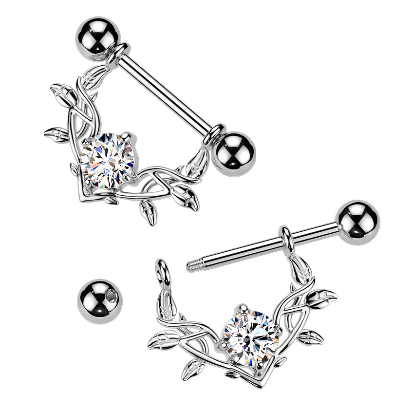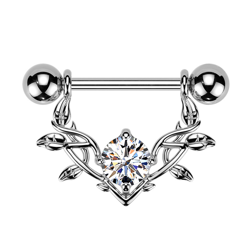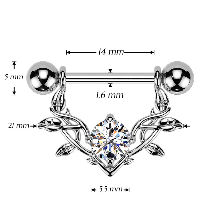 Ozdobný piercing do bradavky dekorovaný květinovým motivem