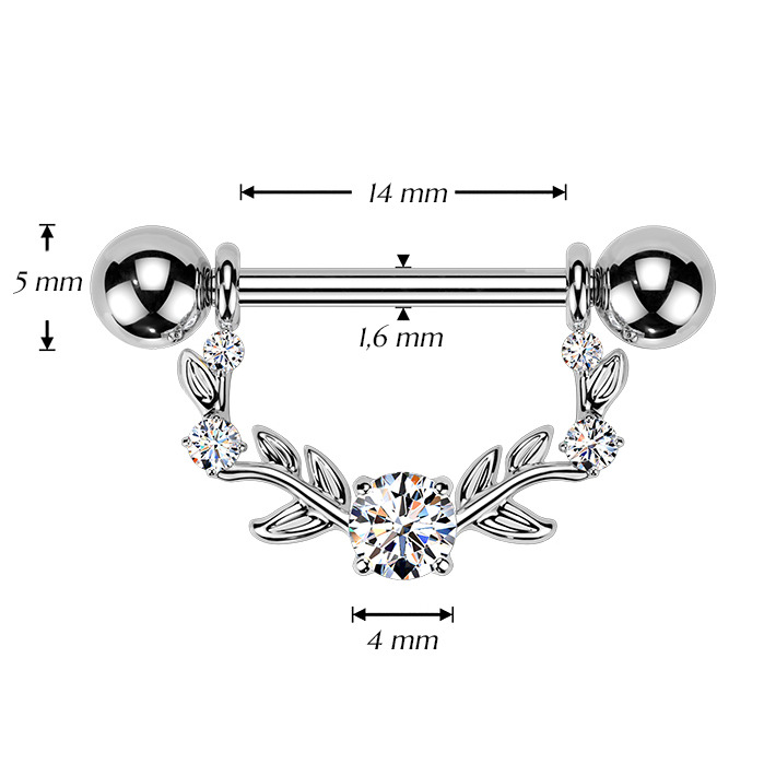 Tyčka a kuličky piercingu jsou vyrobeny z chirurgické oceli 316L a ozdobná část z nezávadné rhodiované bižuterie