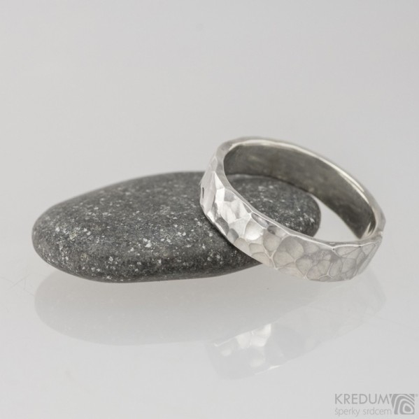 Snubní prsten vyhotovený z ručně kovaného stříbra jakosti 925/1000