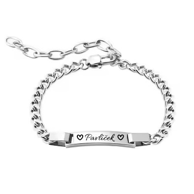 Aby byl náramek výjimečný, vyhotoví náš tým rytců dle Vašeho zadání laserovou rytinu tak, jak si ji sami navrhnete. Výsledná rytina má tmavě šedou až černou barvu. Vybrat si můžete i ze široké nabídky symbolů, například symbol nekonečna či drobné srdíčko, kterými dotvoříte vlastní text a uděláte jej originálním a jedinečným.
