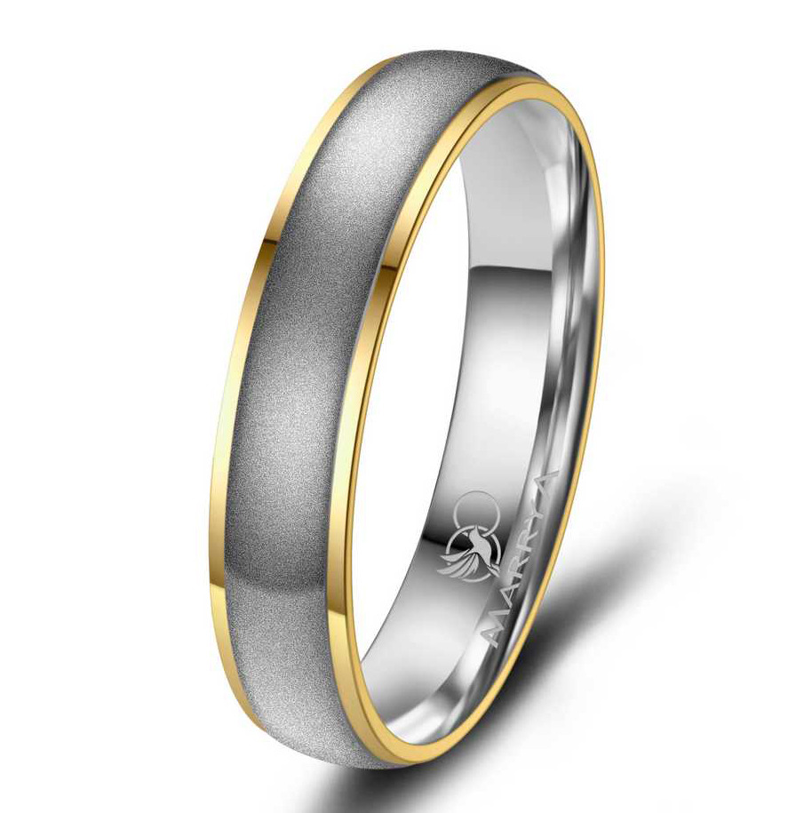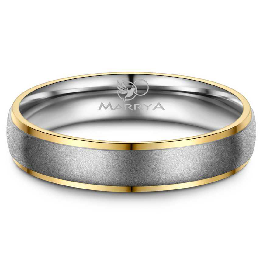 Pánský prsten má matnou povrchovou úpravou s bočními zlacenými drážkami v barvě žlutého zlata. Prsten má lehce zaoblený profil a pro pohodlné nošení je prsten uvnitř bombírovaný.