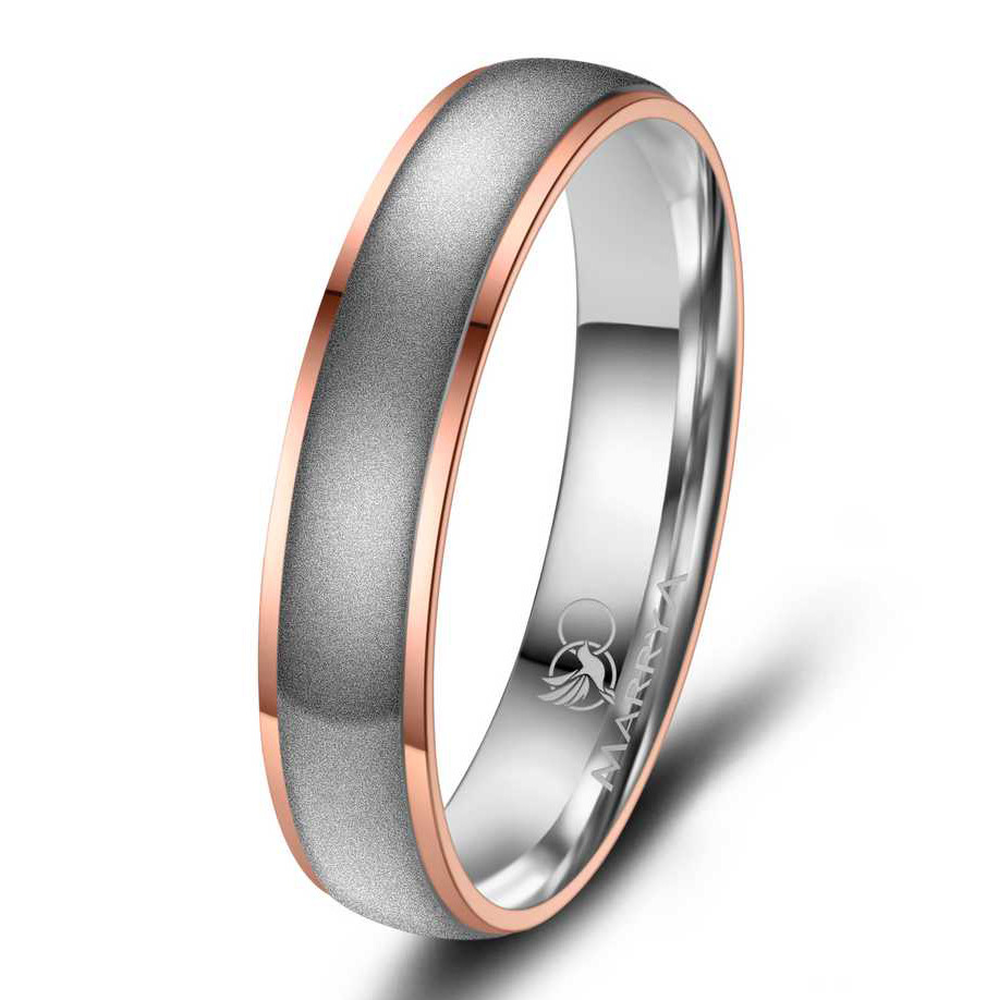 Pánský prsten má matnou povrchovou úpravou s bočními zlacenými drážkami v barvě růžového zlata. Prsten má lehce zaoblený profil a pro pohodlné nošení je prsten uvnitř bombírovaný.