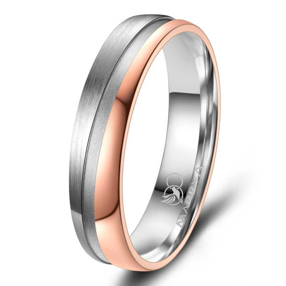 Pánský prsten má kombinovaný matný povrch a lesklý povrch v barvě růžového zlata. Na šikmo, po celém obvodu prstenu prochází decentní ozdobná drážka. Prsten má jemně zaoblený profil a je pro pohodlné nošení je uvnitř bombírovaný.