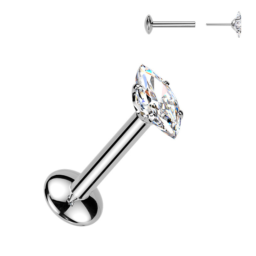 Luxusní titanový piercing do brady s kamenem MOISSANIT
