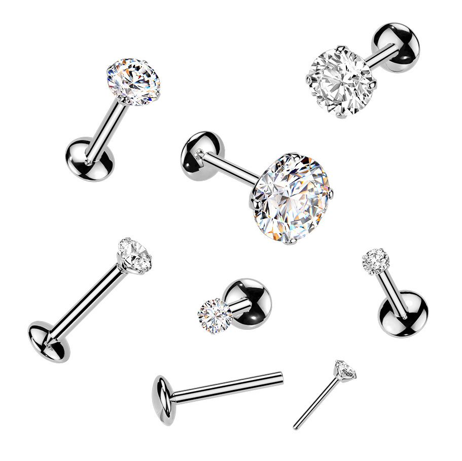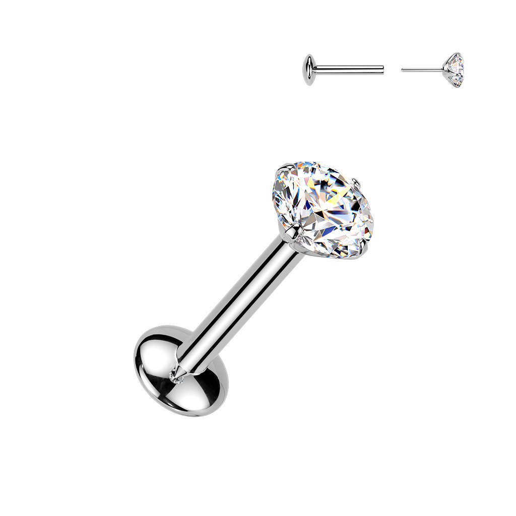 Luxusní titanový piercing do brady nebo ucha s kamenem MOISSANIT