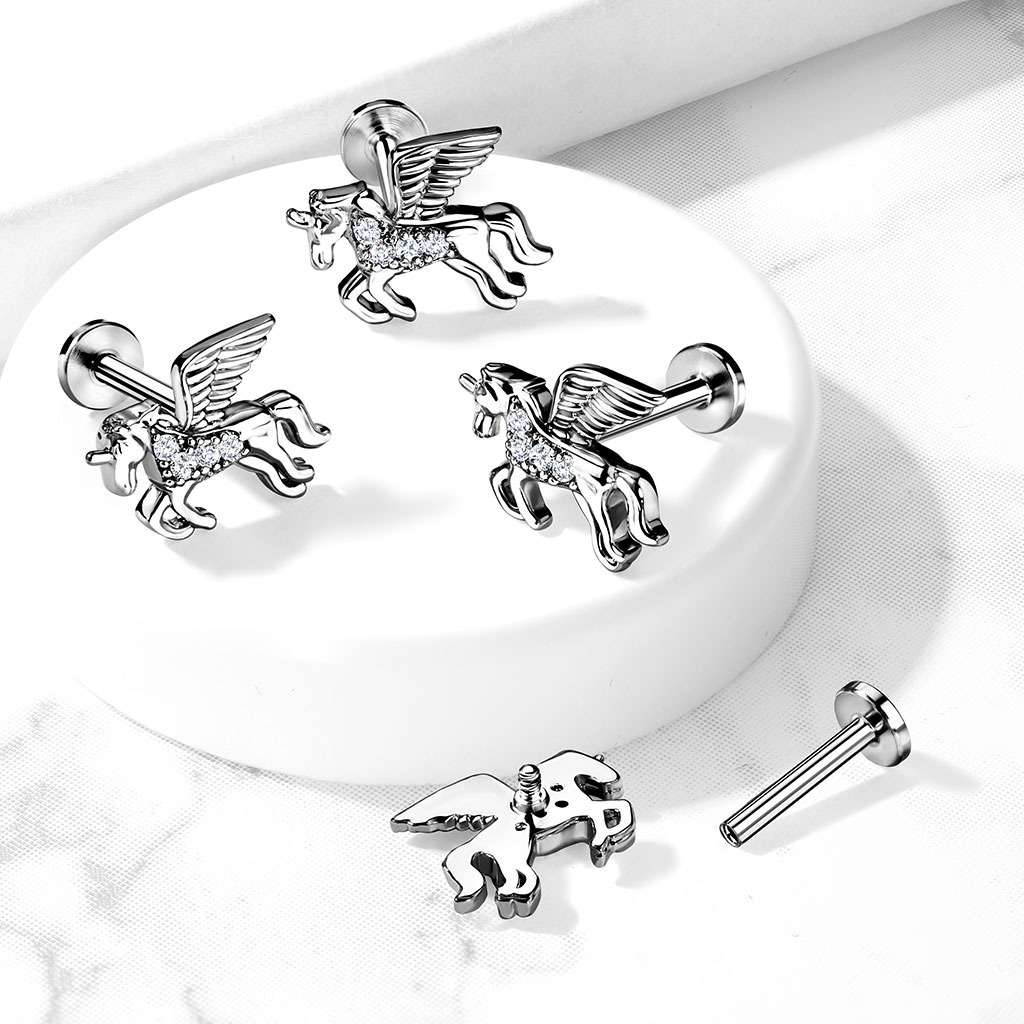 Piercing do brady - labreta / cartilage piercing se šroubovací ozdobnou částí v podobě jednorožce