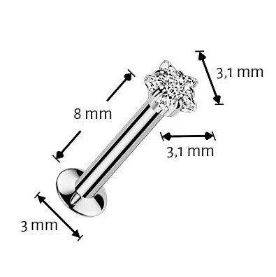 Piercing do brady hvězdička - PUSH IN labreta