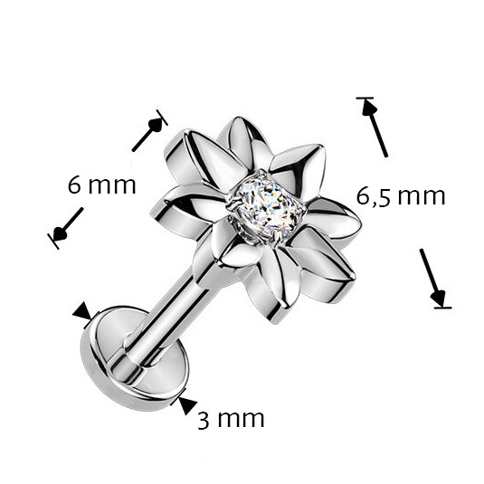 Labreta - piercing do brady bez závitu s "Push in" uzávěrem