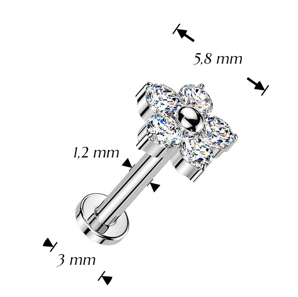 Labreta - piercing do brady bez závitu s "Push in" uzávěrem