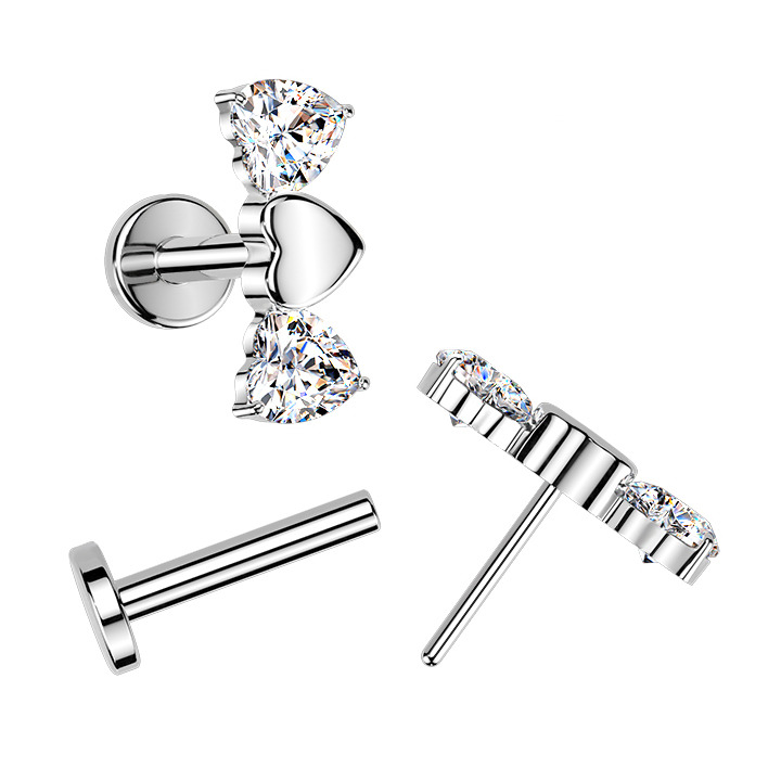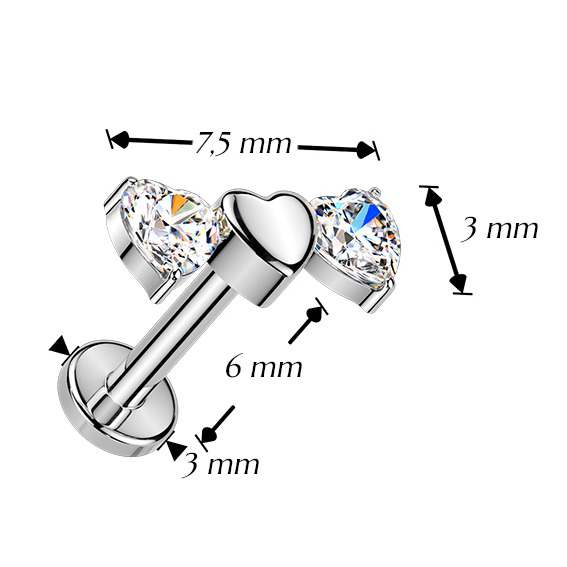 Piercing do brady se srdíčky - PUSH IN labreta TITAN