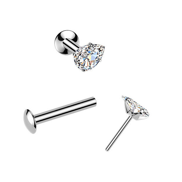 Tyčka piercingu je vyrobena z nerezové oceli a ozdobná část je z nezávadného obecného kovu se rhodiovanou povrchovou úpravou.