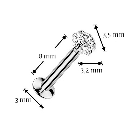 Ozdobná labreta s ozdobnou částí dekorovanou zirkonem čiré barvy