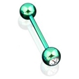 Piercing do jazyka je vyroben z chirurgické oceli 316L a povrchově barevně eloxován titanem
