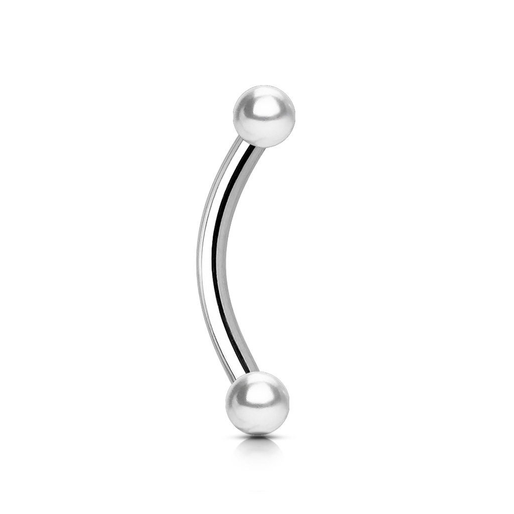Piercing do obočí - perličky bílé, 1,2 x 8 mm, kuličky 3 mm