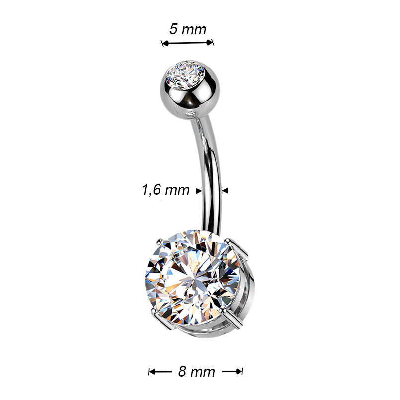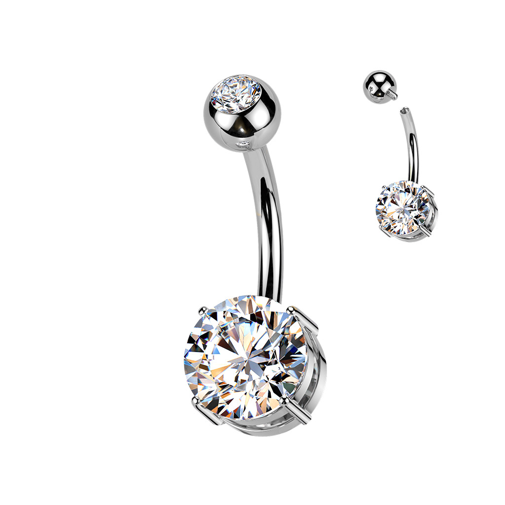 Titanový piercing do pupíku dekorovaný zirkony čiré barvy
