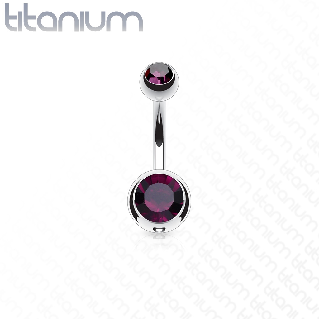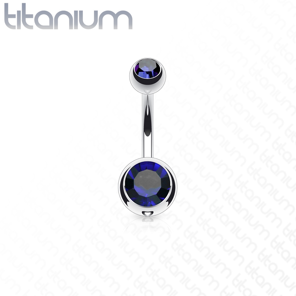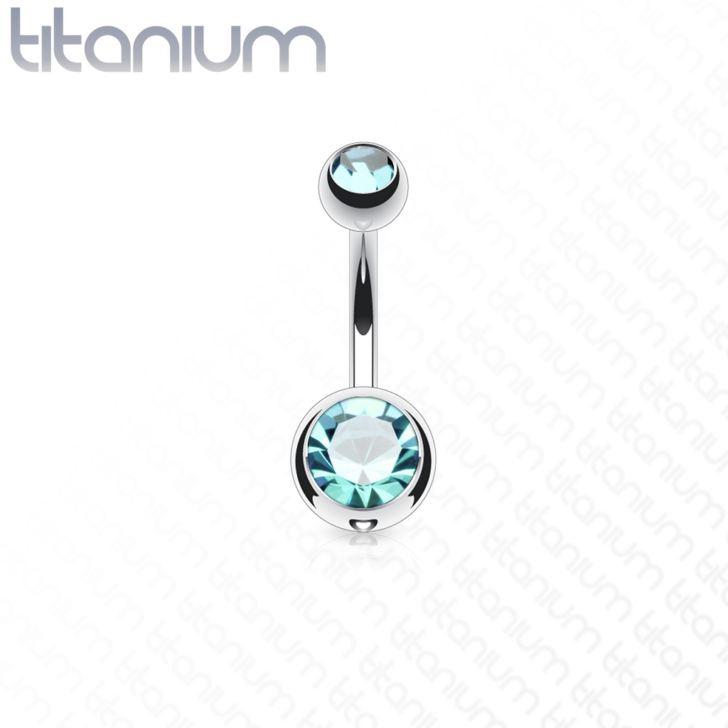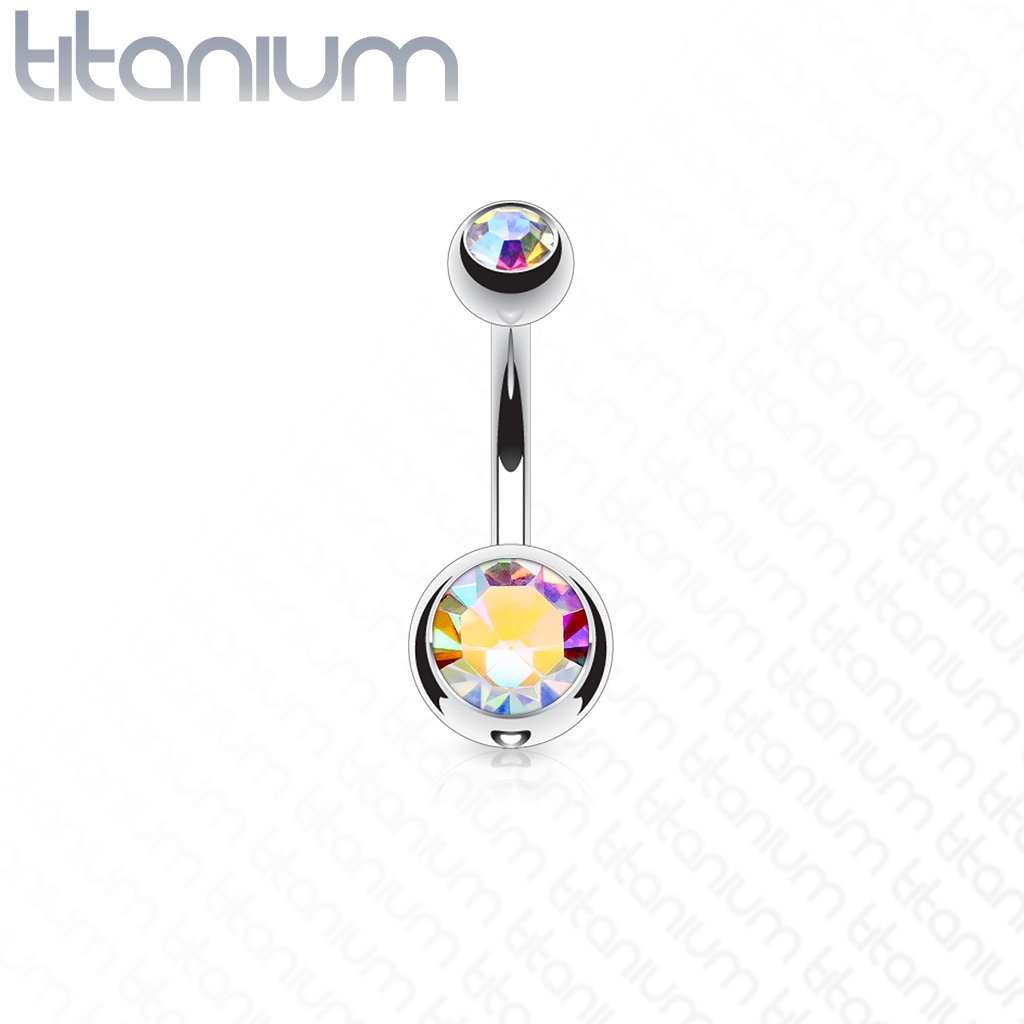 Titanový piercing do pupíku zdobený zirkony