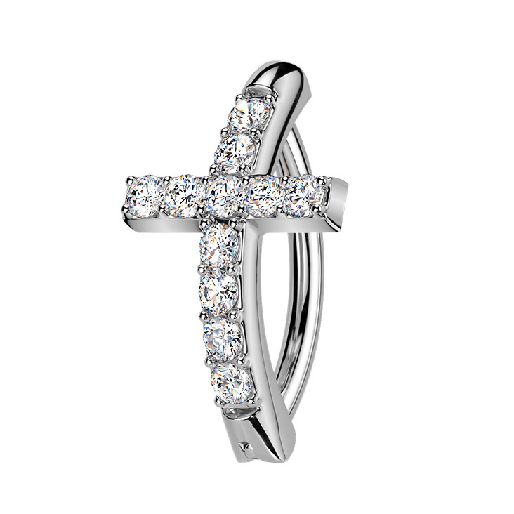 Nudí-li Vás již klasické pupíkovky, pak věříme, že Vás zaujme tento nový typ piercingu do pupíku se štítem dekorovaným motivem kříže