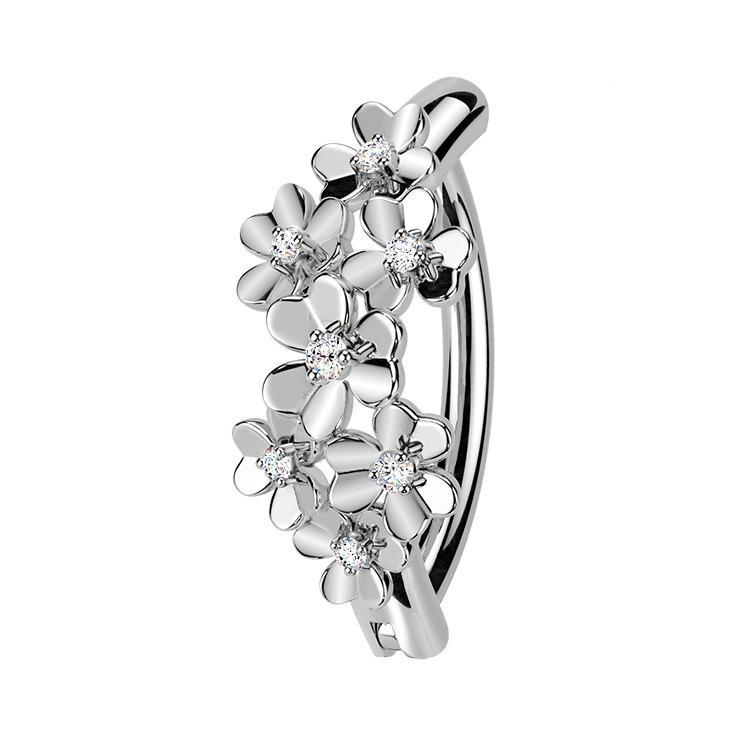Nudí-li Vás již klasické pupíkovky, pak věříme, že Vás zaujme tento nový typ piercingu do pupíku se štítem dekorovaným drobnými kytičkami