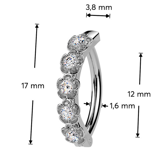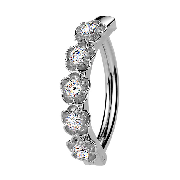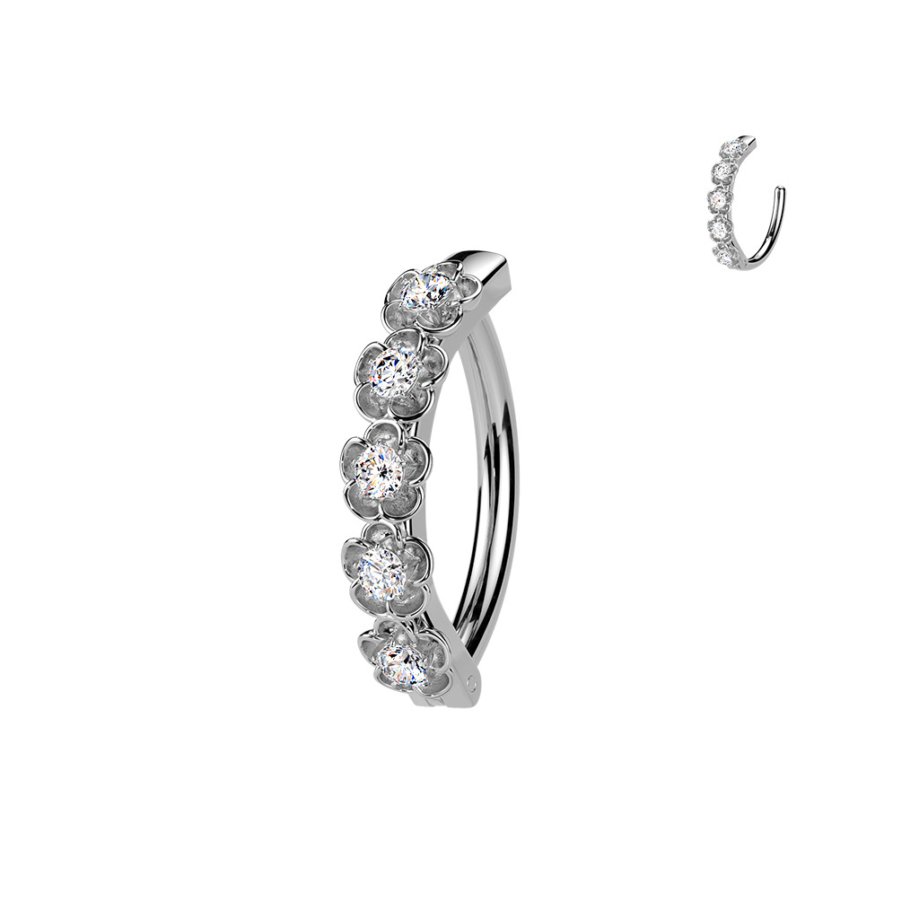 Nudí-li Vás již klasické pupíkovky, pak věříme, že Vás zaujme tento nový typ piercingu do pupíku se štítem dekorovaným drobnými kytičkami