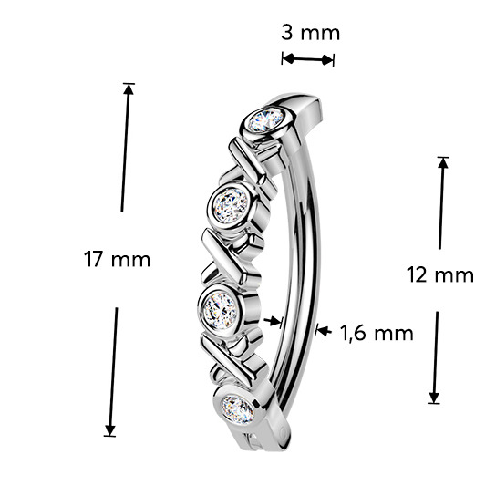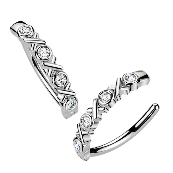 Tyčka tohoto piercingu je vyrobena z jakostní nerezové oceli a ozdobný štít je z nezávadné rhodiované bižuterie