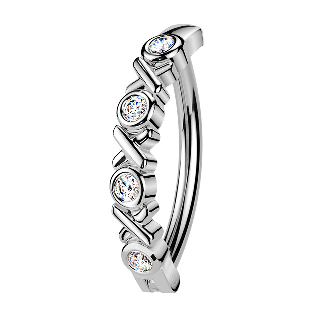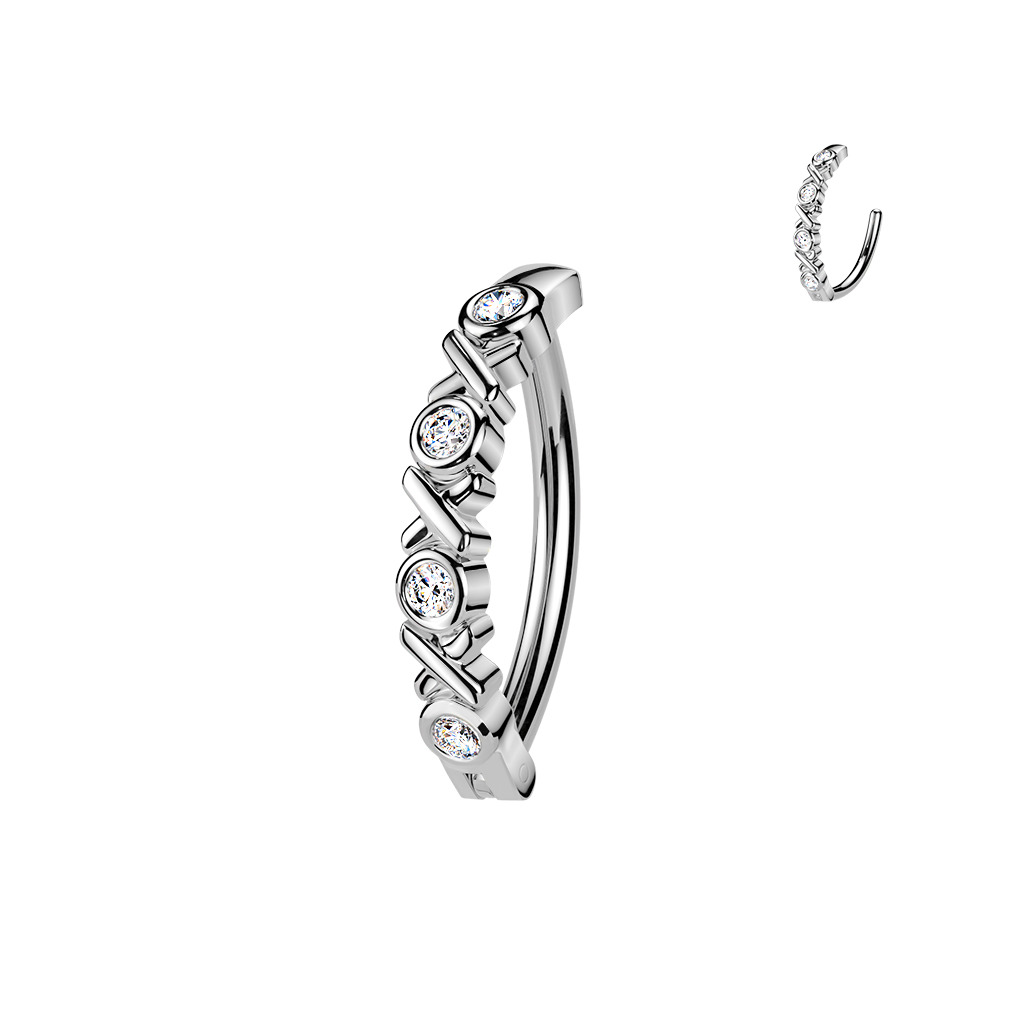 Nudí-li Vás již klasické pupíkovky, pak věříme, že Vás zaujme tento nový typ piercingu do pupíku se štítem dekorovaným zirkony