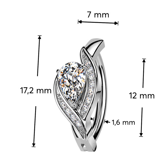 Tyčka tohoto piercingu je vyrobena z jakostní nerezové oceli a ozdobný štít je z nezávadné rhodiované bižuterie