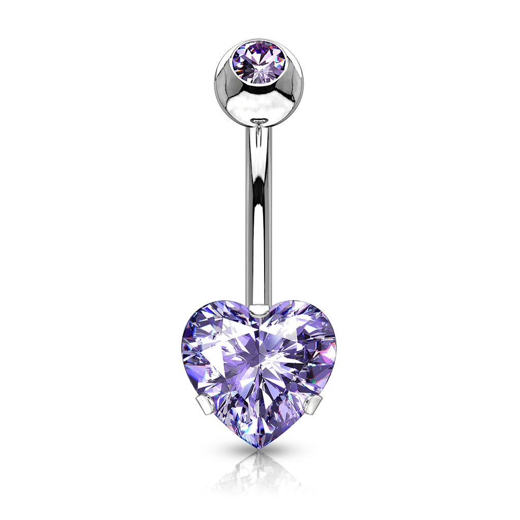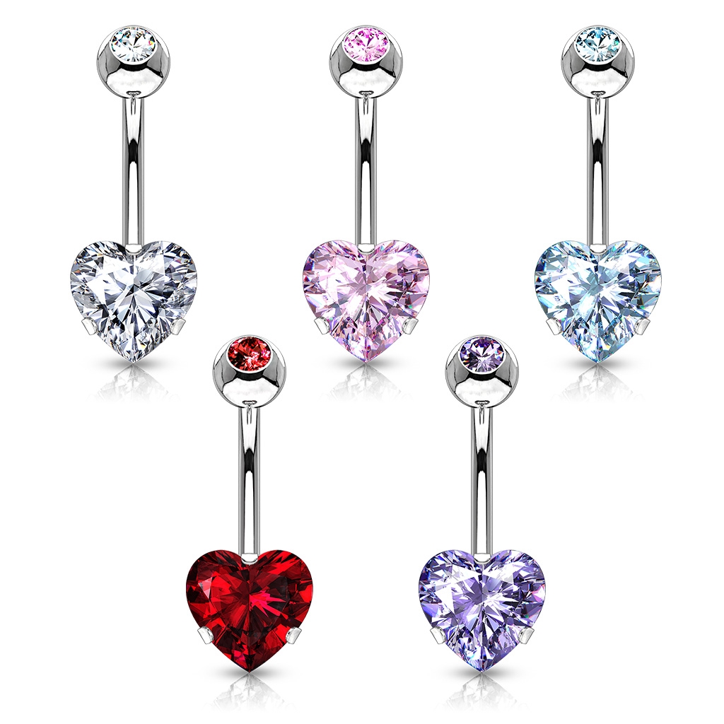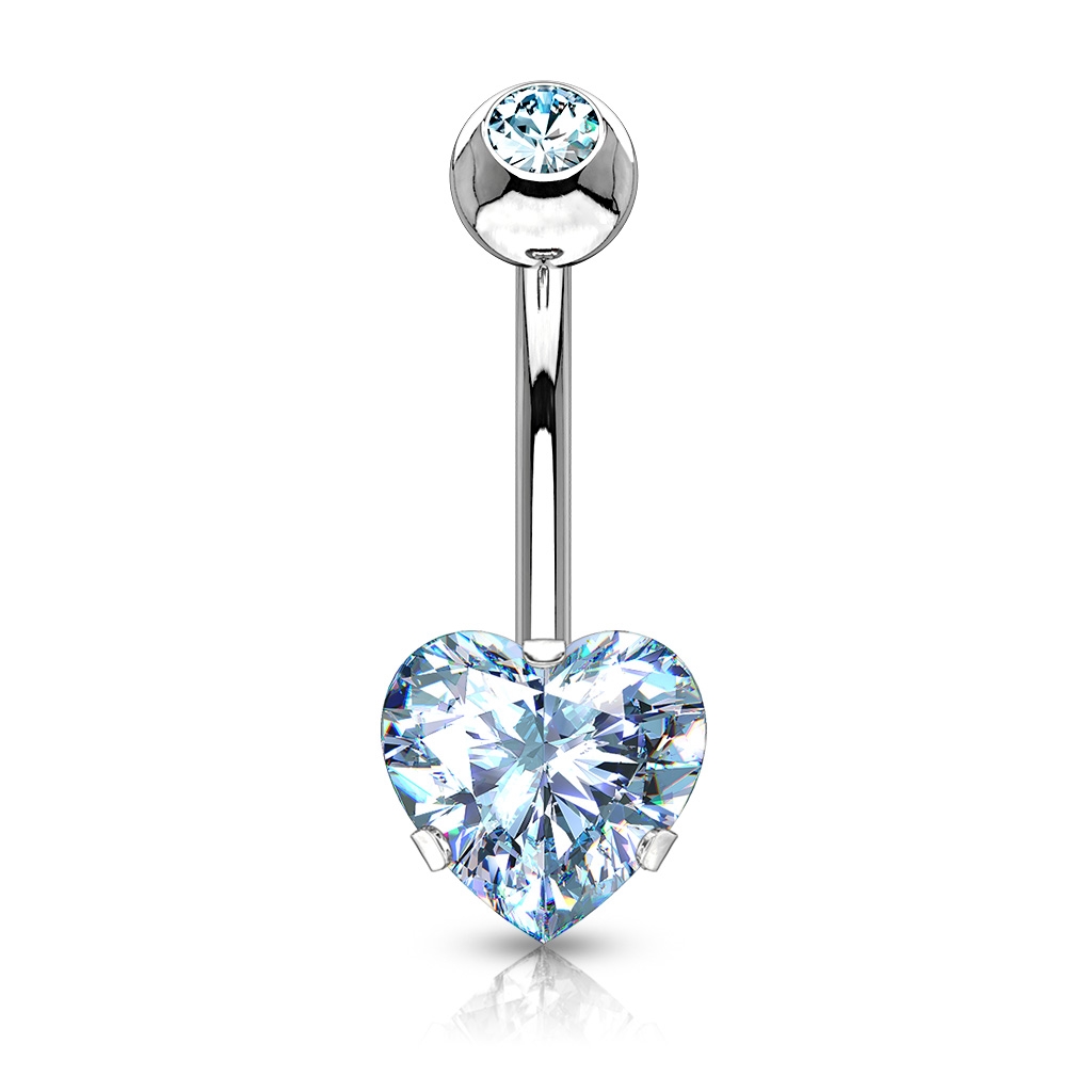 Piercing do pupíku zdobený kamenem ve tvaru srdce o rozměru 7 mm