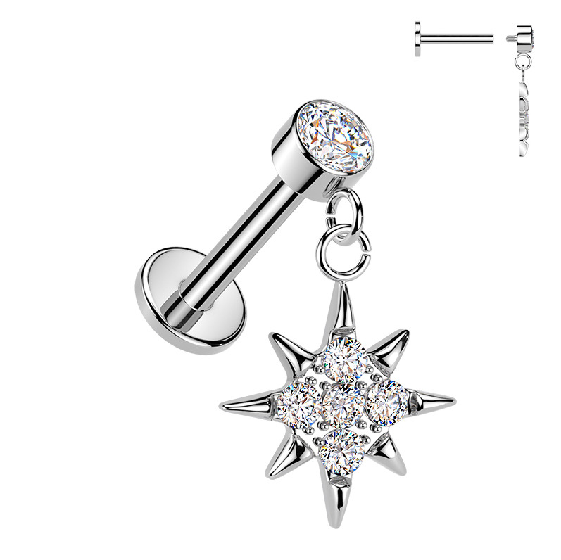 Labreta je vyrobena z kvalitní chirurgické oceli 316L a ozdobná visací část z nezávadné rhodiované bižuterie