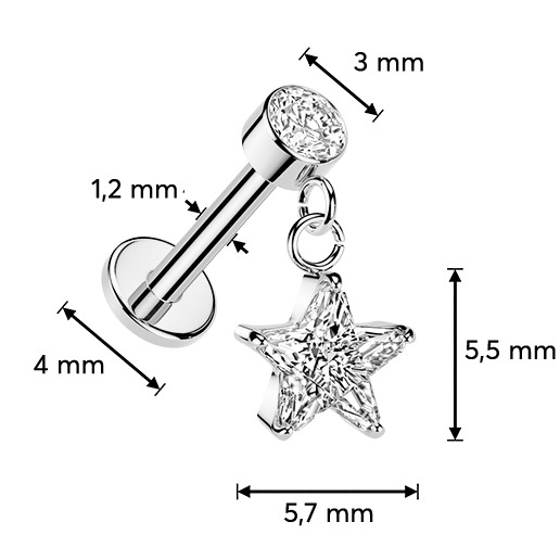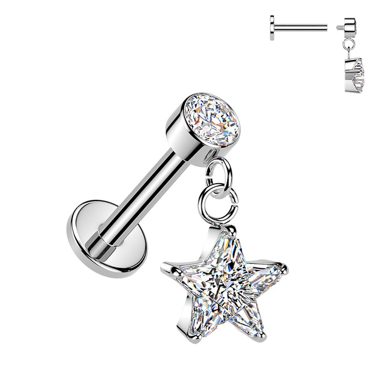 Piercing do ucha - labreta se zavěšenou hvězdičkou