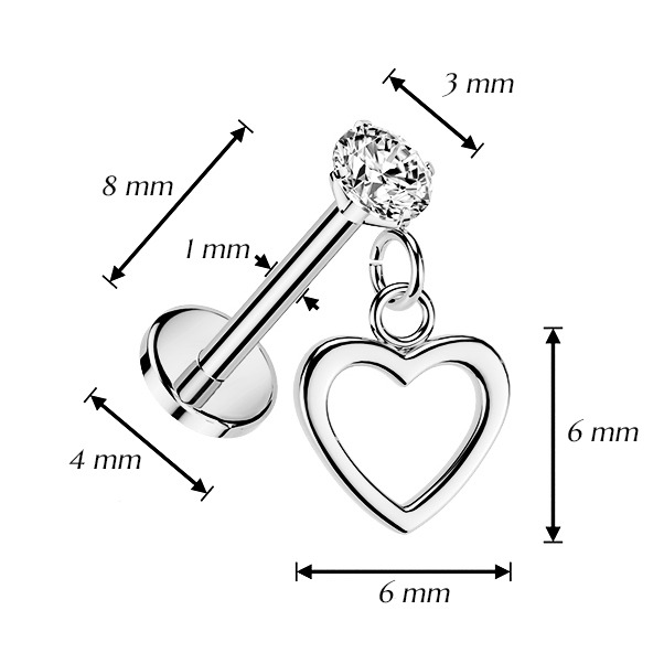 Piercing do ucha - labreta se zavěšeným srdíčkem