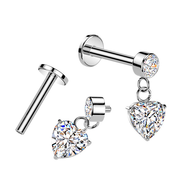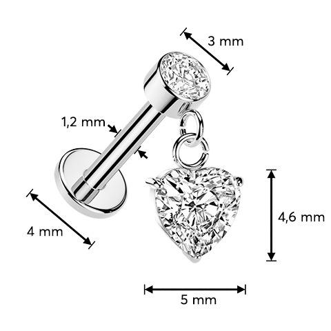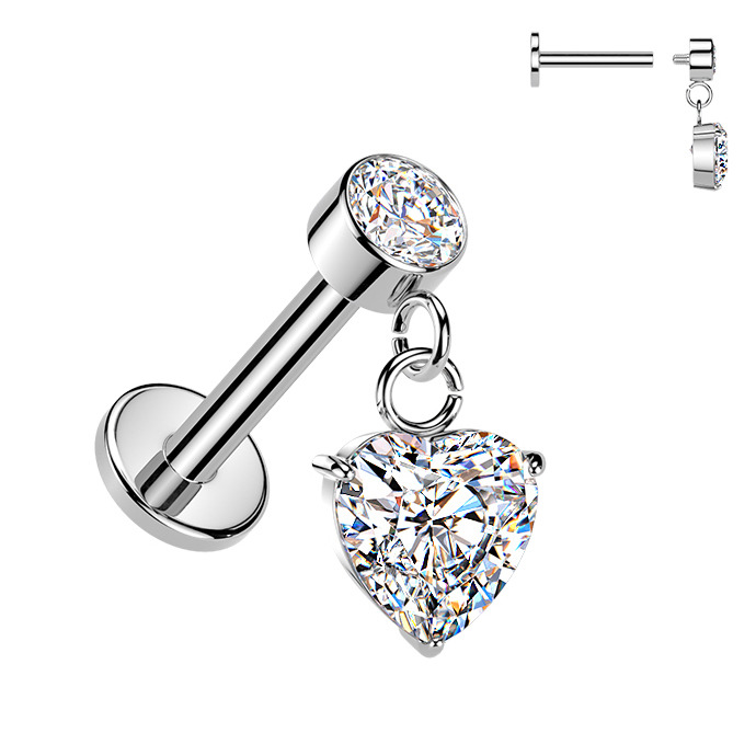 Piercing do ucha - labreta se zavěšeným srdíčkem