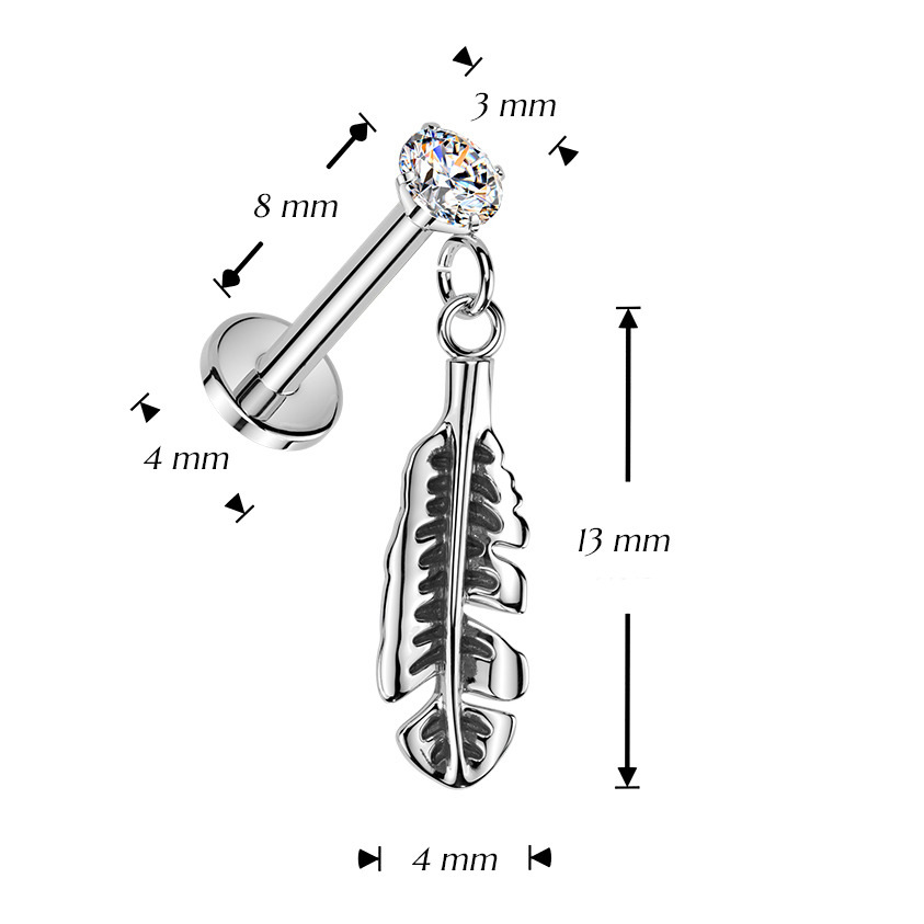 Piercing do ucha PUSH IN labreta s peříčkem