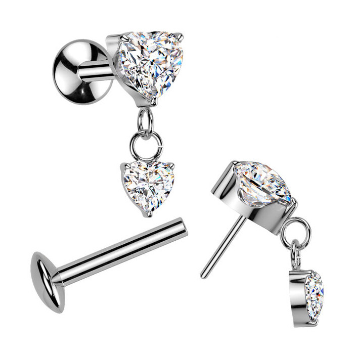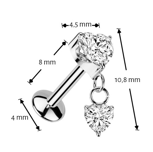 Piercing do ucha se srdíčky - PUSH IN labreta TITAN