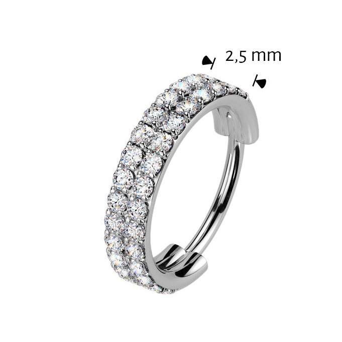 Ozdobný piercing - segment kruh se skrytým zapínáním a zirkony čiré barvy