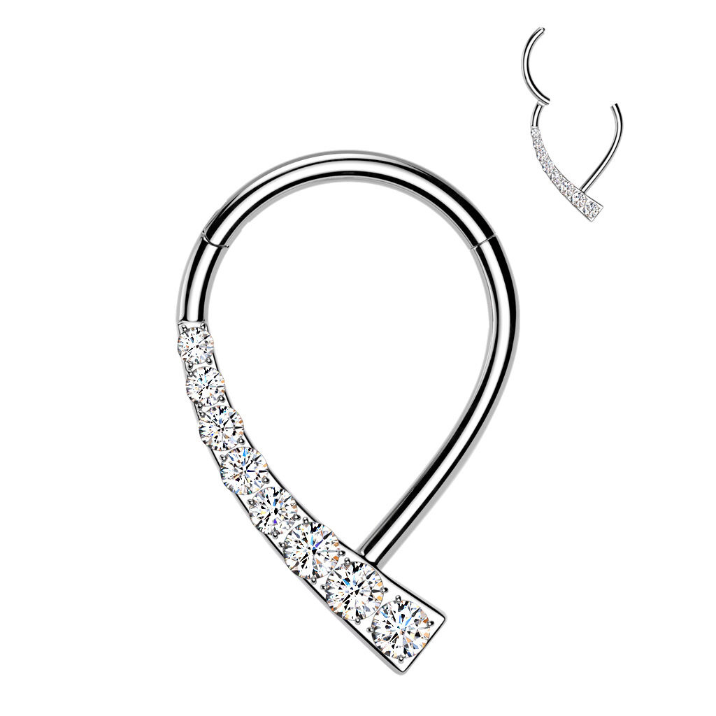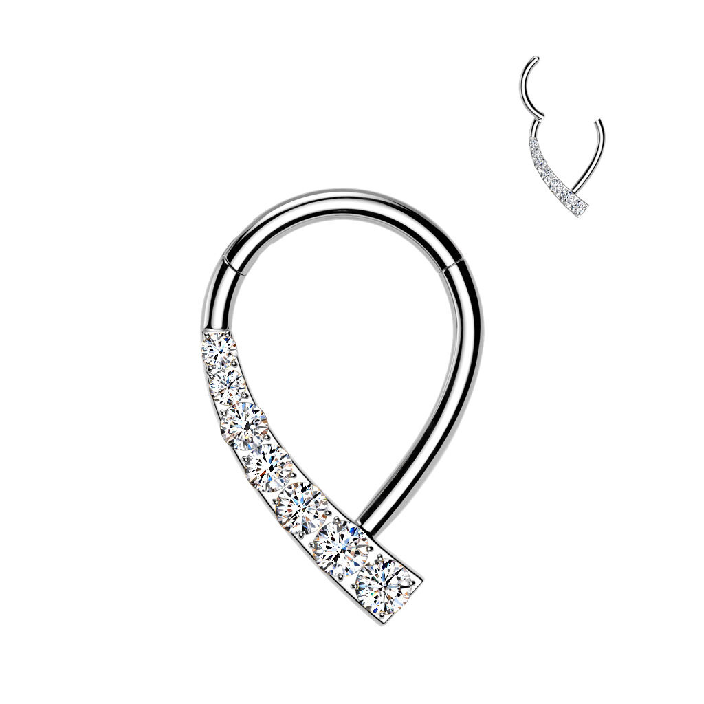 Ozdobný piercing - segment kruh se skrytým zapínáním a zirkony čiré barvy