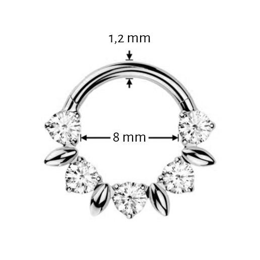 Kruh je vhodný do nosu (septum) nebo ucha (tragus, helix, cartilage)