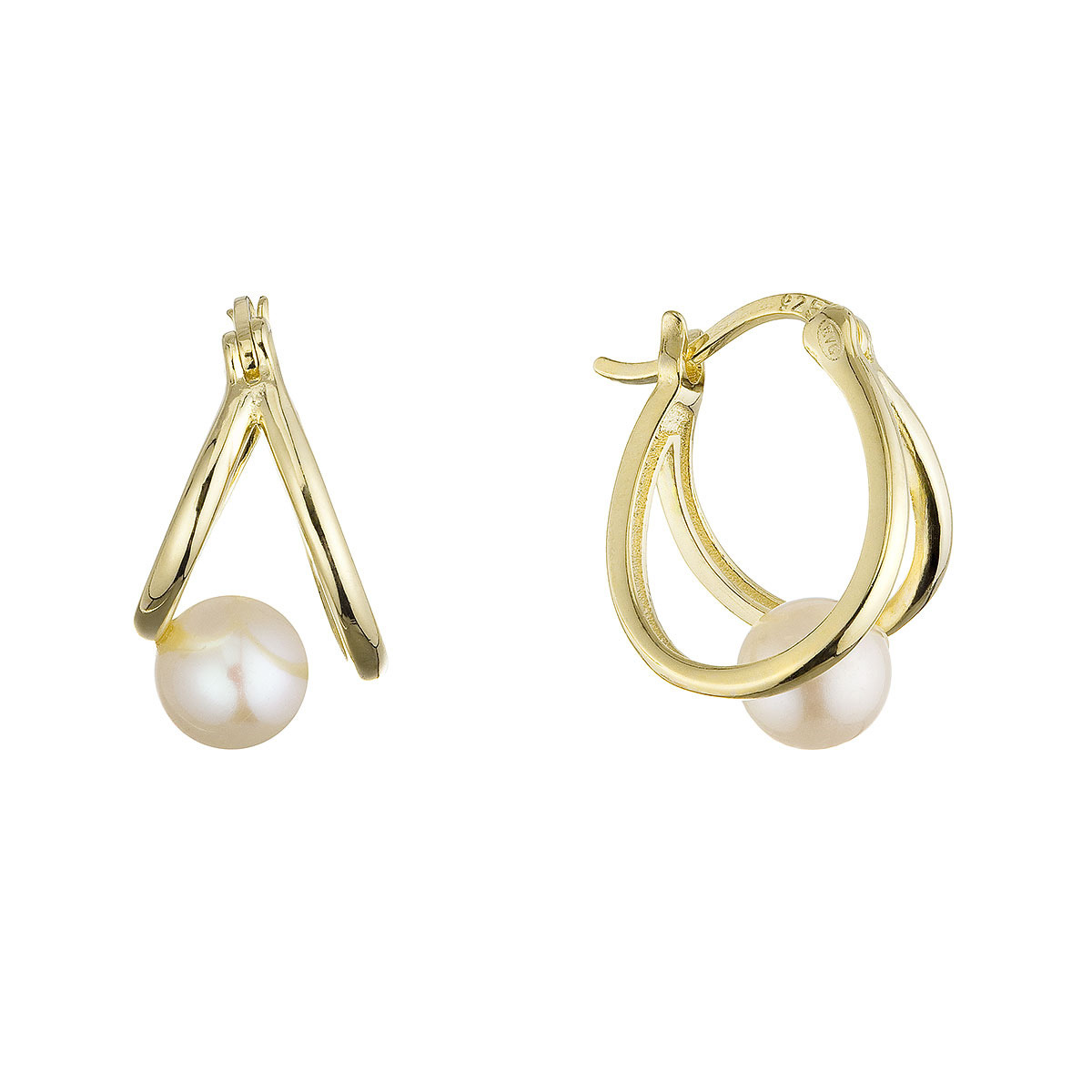 Tyto náušnice spojují klasickou krásu perel s moderním designem. Jemně tvarované kruhy z pozlaceného stříbra obklopují bílou říční perlu, která září čistotou.