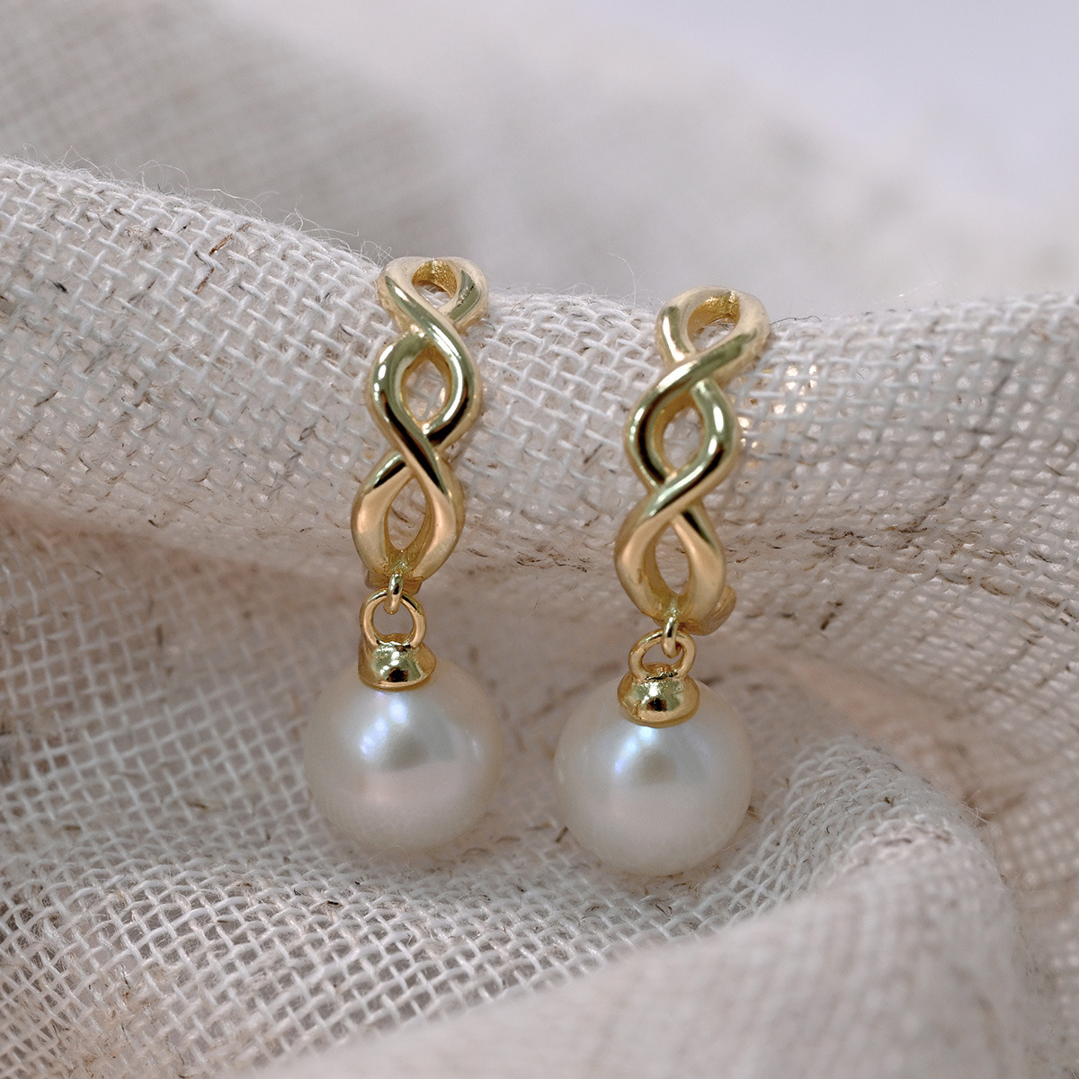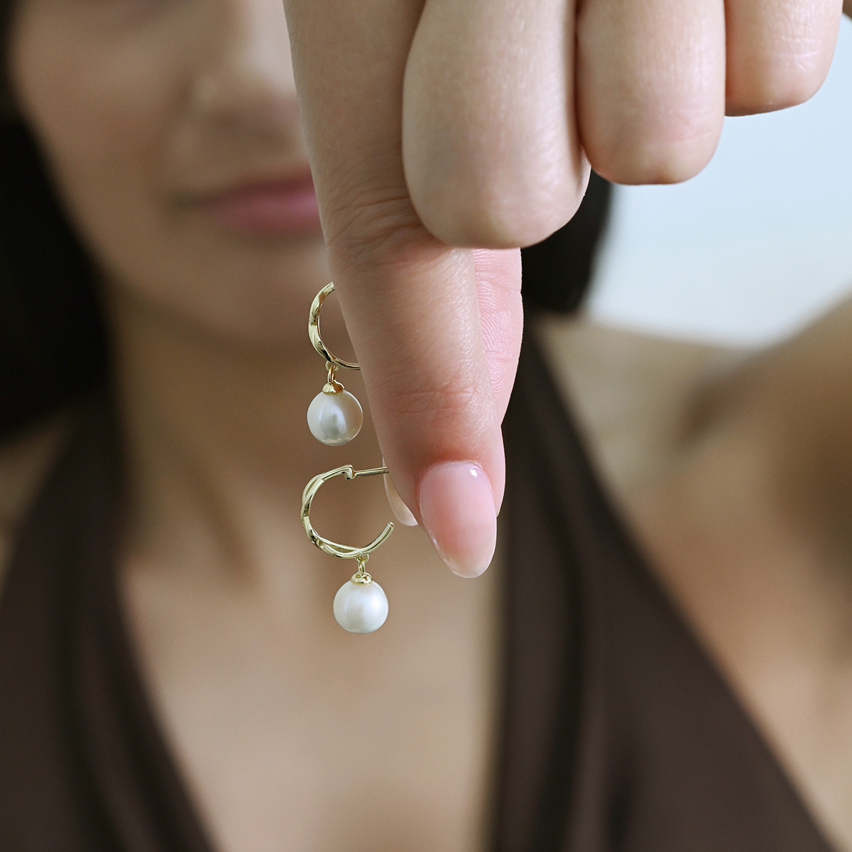 Tyto náušnice zaujmou svým elegantním designem, který kombinuje pozlacené stříbro s bílou říční perlou. Perla kvality AA dodává náušnicím luxusní vzhled.
