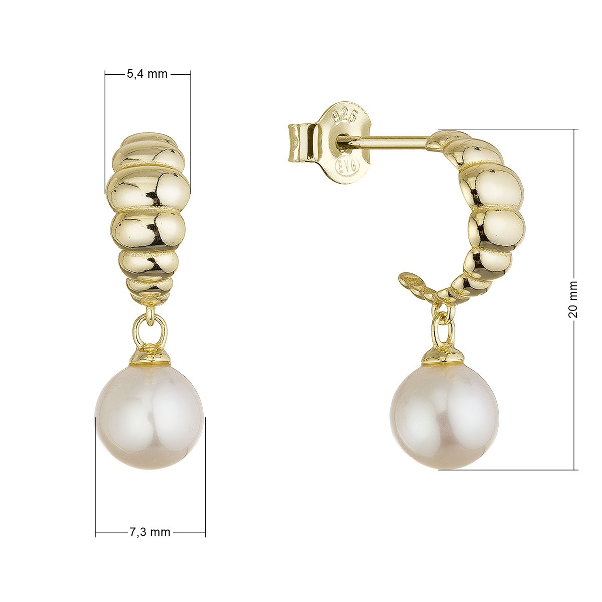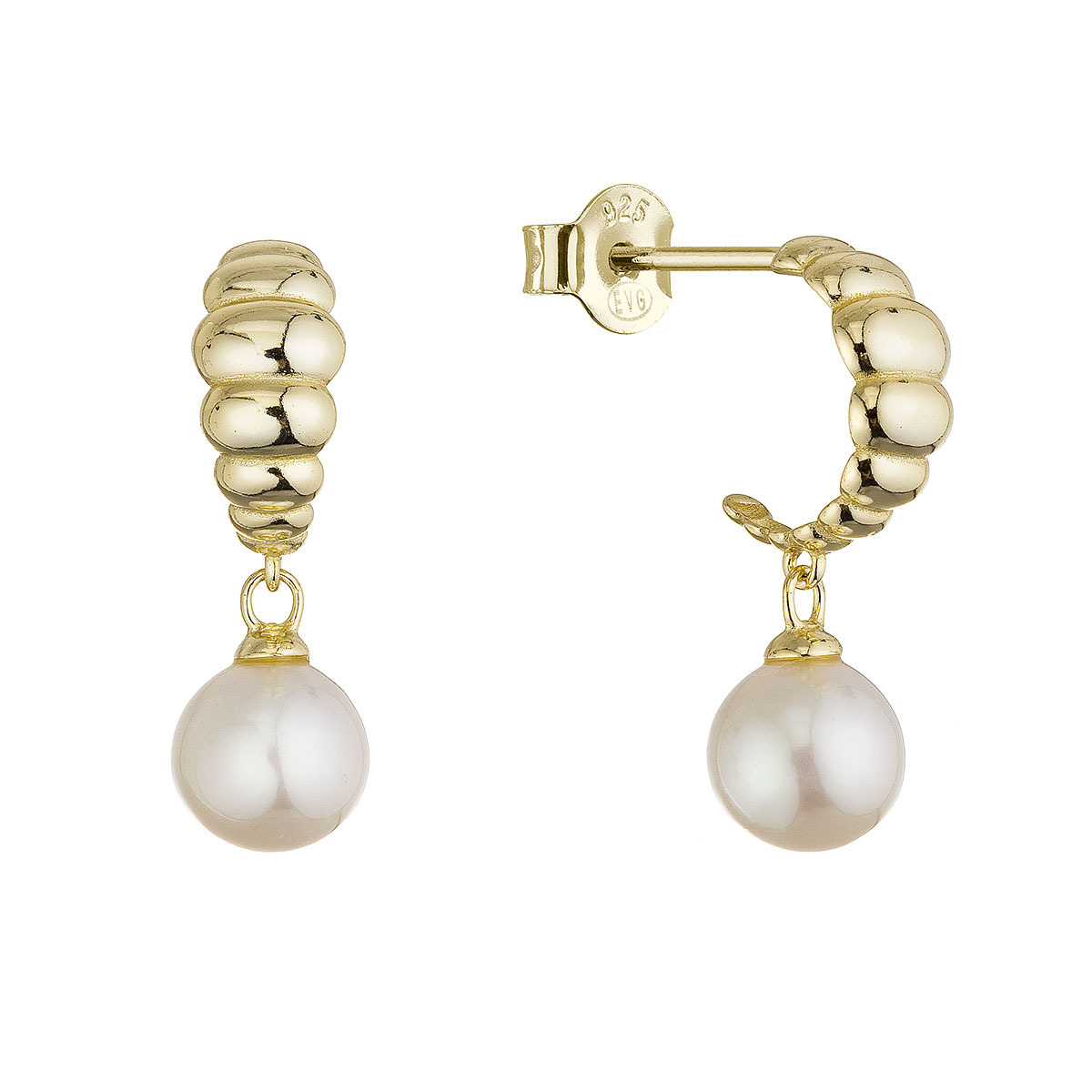 Pozlacené náušnice kruhy se zavěšenou říční perlou